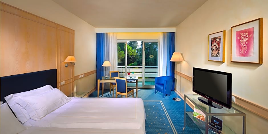BUNGALOW SUPERIOR BILOCALE is 431 square feet and includes either a double bed 131-150 width or 2 single beds 80-130 width plus living room, satellite tv , hairdryer, safe, bathrobes, and slippers.